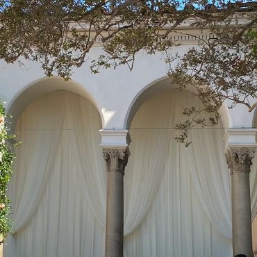 Valentin Drapery Designs takes every measure to ensure that all fabric used is professionally dry cleaned and free of stains prior to setup. However, we are not responsible for any fabric that becomes soiled due to an unclean working environment at the event site. Clients are responsible for ensuring that the designated setup area is clean and suitable for installation. With over 30 years of experience, Adalberto is an expert in working with all types of fabrics and can replicate draping styles from reference images. If